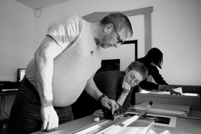 Kuvien valinta ja viimeistely on aina kiinnostava vaihe. Pöydän ääressä kuvia katsotaan monin eri tavoin. Joku kiinnittää huomiota valoon ja sommitteluun, toinen tunnelmaan ja tarinaan, kolmas tekniseen laatuun. Keskustelu on osa tekemistä – ja usein juuri se auttaa näkemään omat kuvat uudesta kulmasta. Kun vedos lopulta asettuu paspartuuriin ja näyttää “valmiilta”, tulee onnistumisen tunne.